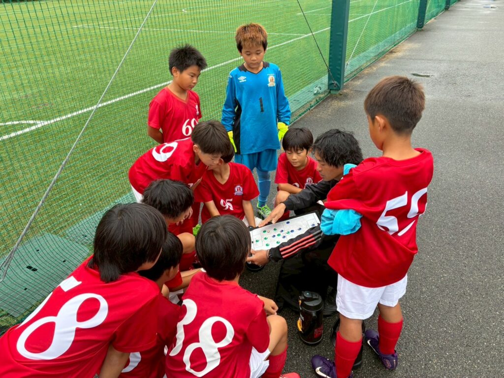 1日目、初めからすごく攻撃の形もよく思った以上に得点もできて滑り出し順調だったけど、とくにろくとたくとサイドで、たくとの抜け出しが良かった。2試合目から勝ち上がる難しさを痛感させられたね。球際の強さ、プレススピード、攻守の切り替えの所で、フィールドに立っている子の中で誰も緩んじゃいけない所。そういった部分ではいっさが必死になってやってたかな。だけどボールを持ってない時に忘れがちになるから、周りで気づいたら声かけをしていこうね。声かけはしゅんが良く声かけしてたよ。